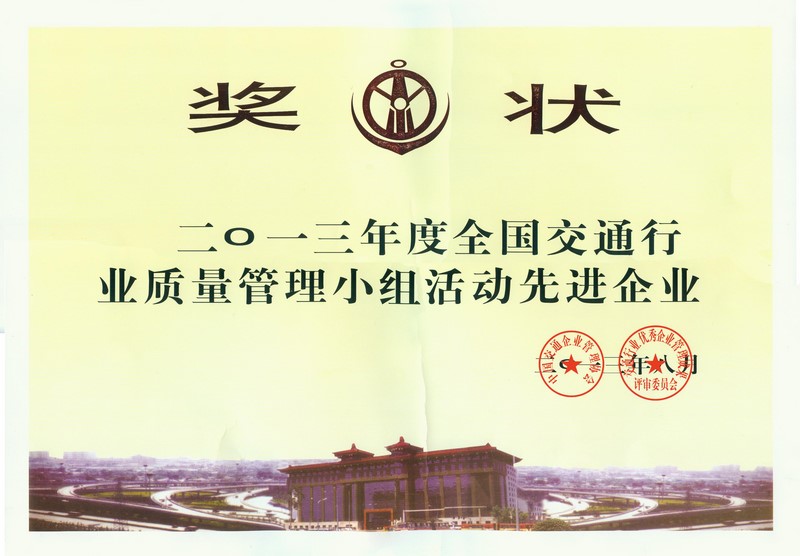 全国交通行业质量管理小组活动先进企业(2013年度)
