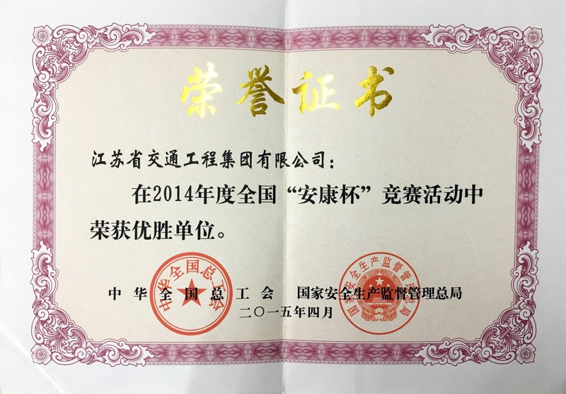 全国“安康杯“竞赛活动中荣获优胜单位(2014年度)