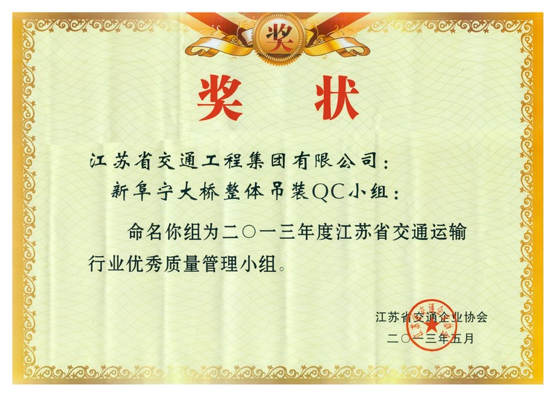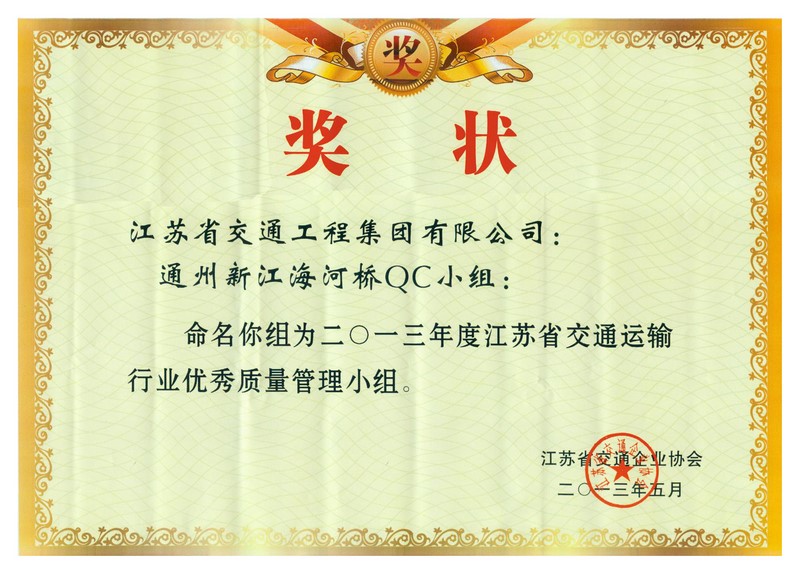 江苏省交通运输行业优秀质量管理小组(2013年度)