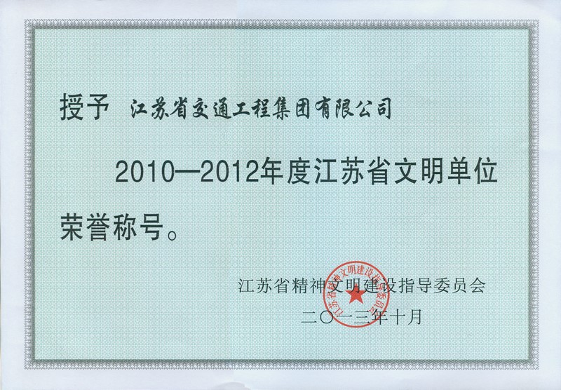 江苏省文明单位荣誉称号(2010-2012年度)