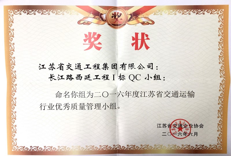 江苏省交通运输行业优秀质量管理小组(2016年)