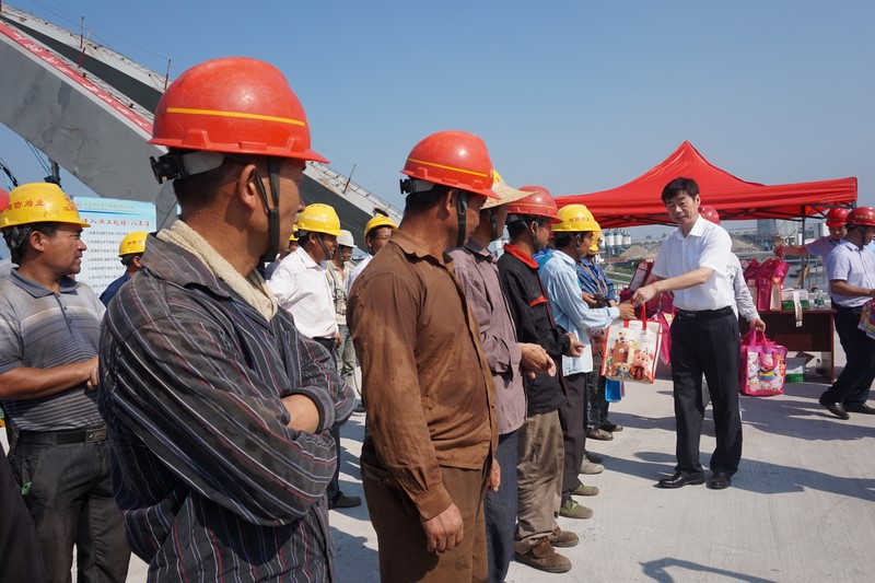 李书记要求项目部一定要做好防暑降温措施,合理安排作息时间,避开高温时间段施工。他还叮嘱工人们在高温天气里工作要注意身体和安全。广大职工纷纷感谢县领导的关怀和慰问,表示一定坚守工作岗位,加倍努力工作,按期完成黄海路西大桥通车目标。(林承圆)