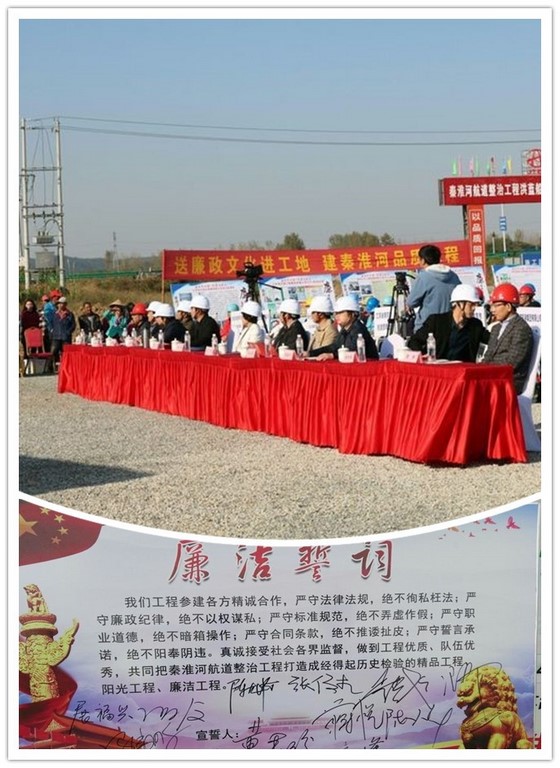 10月30日下午,海外分公司承建的秦淮河航道整治工程洪蓝船闸施工现场彩旗飘飘,人头攒动,由南京市航道管理处主办的“廉政文化进工地”启动仪式暨第四期道德讲堂文艺汇演在这里隆重举行。