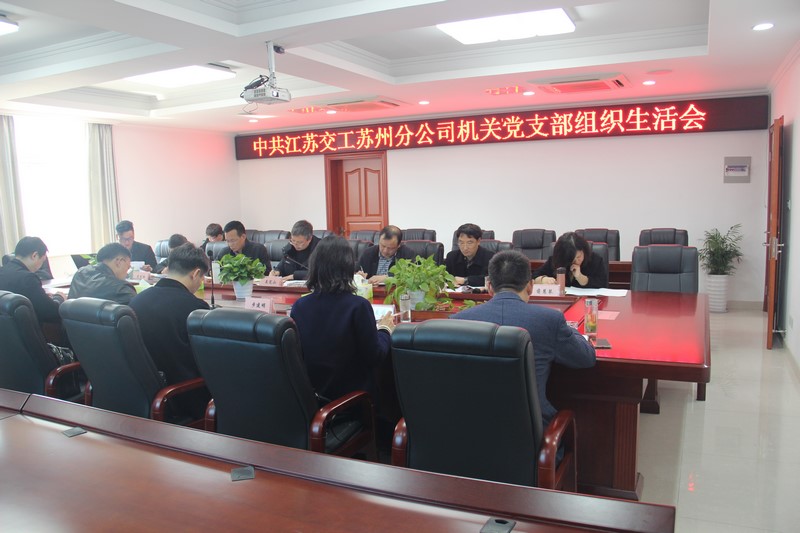 3月13日下午,江苏交工苏州分公司机关党支部于召开2017年度组织生活会。镇江市交通运输局党委委员、港口处处长步建明,港口处主任科员兼副处长沈美娟,组织人事处副处长李锦,集团公司党委副书记、总裁龚万斌,党委委员、工会主席、党群工作部部长朱乾震等领导莅临会议。