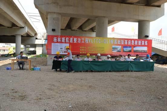 8月25日上午10时,在太仓桥梁1标岳王大桥施工现场举行了高空坠落应急救援演练。苏州市航道处、市水运指、苏州交投公司等单位代表及其他苏州水运工程施工单位、监理单位主要负责人共计40多人参加了演练观摩,镇江分公司副总经理、太仓桥梁1标项目部经理薛翔参与了演练,并担任应急救援总指挥。