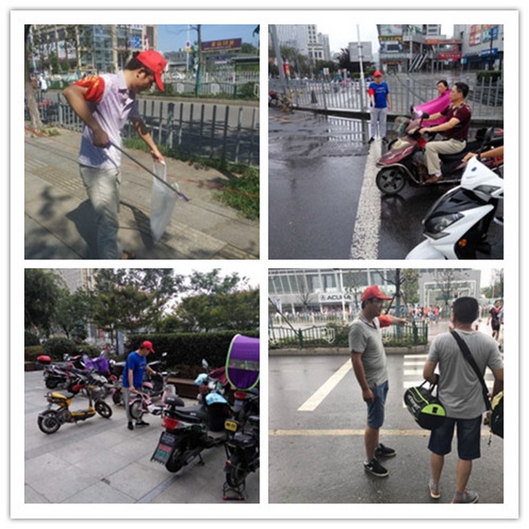 在8月15日——17日,每天派出的四名“志愿者”从上午7:00至下午18:00,在分配给集团公司负责的“常发广场——九华山路”区域进行执勤。8月16日当天下着小雨,百川公司陈亮、张旋在雨中一直忙碌着,陈亮坚守在公交站台维护秩序,新进大学生张旋把商场门口乱停乱放的电动车、自行车一一摆放整齐。8月17日上午7:00,市文明办抽查各单位执勤人员情况,百润公司原先报名参加执勤的一位职工因故无法参加,负责联系的周琳得知消息后,安排好自己的手头工作,及时赶到执勤地点,与本单位另一位职工坚守岗位到执勤任务结束。