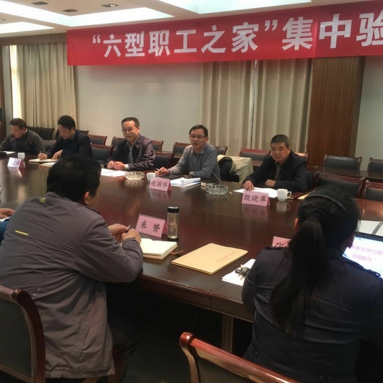 上图为镇江市总工会检查审核百川工会“模范职工小家”工作