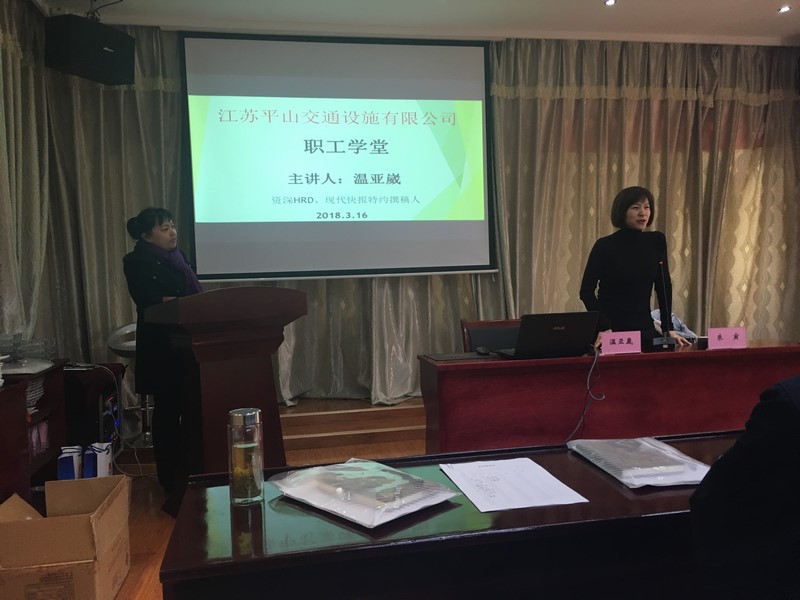 为提高员工执业素养, 3月16日,平山公司开展“职工学堂”讲座活动。本次活动特别邀请拥有多年人力资源工作经验的资深HRD、《现代快报》特约撰稿人温亚崴女士为全体职工授课。