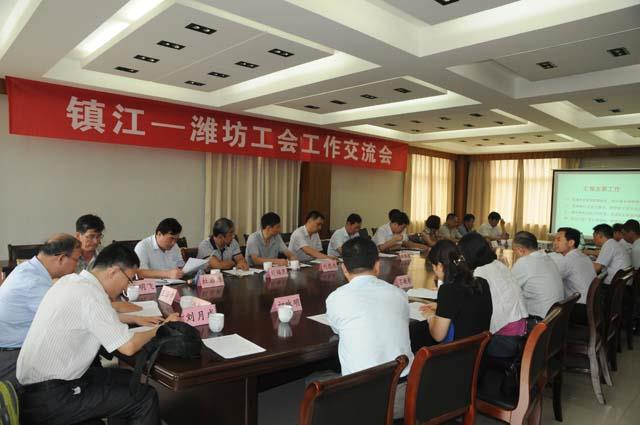 7月4日下午,山东省潍坊市总工会及下属各县(市)、区总工会有关工会干部一行18人来集团公司交流工会工作。镇江市总工会副主席包大成、民管部部长王照龙、组织部部长吕毓蕾陪同交流。集团公司总裁龚万斌、副总裁、党委副书记王春华、工会主席朱乾震及党群工作部有关人员参加交流会。