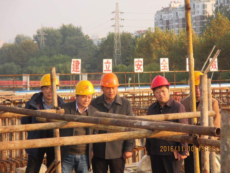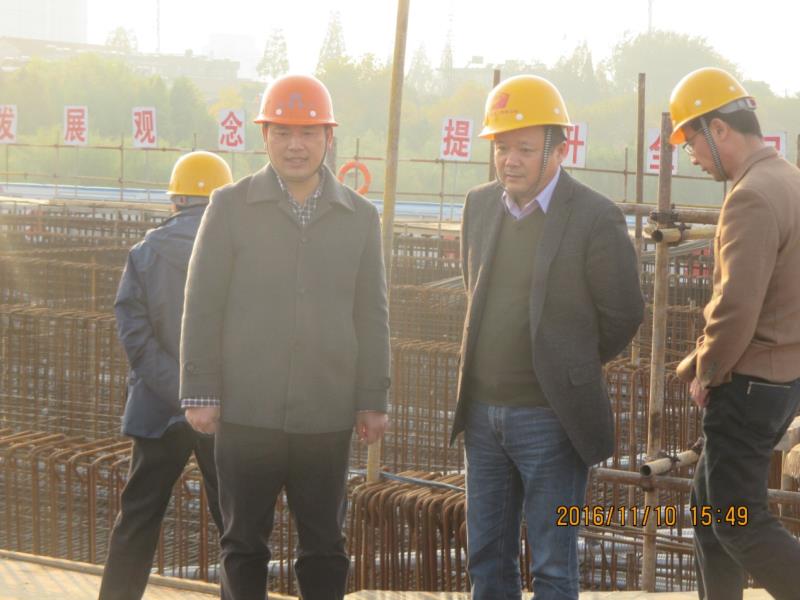 11月10日下午,淮安市交通运输局徐效文局长、张义贵副局长,在市交通工程建设处工程科长柴宗勤陪同下,视察古淮河桥建设工地。开通公司总经理童金槽、项目经理吴春勇等现场迎接陪同。