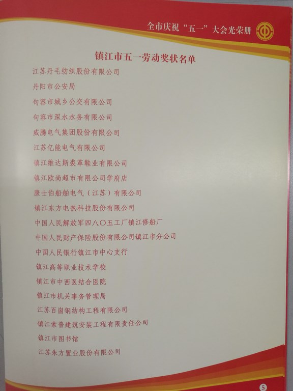百崮公司荣获“镇江市五一劳动奖状”称号