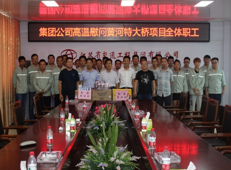 7月12日,集团公司工会主席朱乾震率队,带着防暑降温用品和慰问品来到海外分公司贵州项目部慰问在酷暑中坚守岗位、辛勤工作的三个项目部职工。7月23日至24日,集团公司工会主席朱乾震、党群工作部部长吴丽辉又代表集团公司来到苏州分公司河南渑垣高速4、3、2标和南京分公司黄河特大桥项目进行高温慰问,集团公司总工程师、垣渑高速现场总指挥朱永泉等共同参加。慰问组在每个标段均与驻地项目负责人进行深入交谈,亲自为一线职工送上防暑降温物品和清凉饮料,向奋战在高温一线的职工转达集团公司领导对他们的关怀和慰问,并要求保证员工宿舍空调的安全用电,食堂饭菜做到营养丰富、原材新鲜,每日提供清热降暑的绿豆汤供工人饮用,尽量调整施工作息时间,避开高温时间段作业。朱乾震主席还考察了各标段的临时设施,叮嘱各项目要完善职工食堂、宿舍、浴室、洗衣房、篮球场、活动室等相关设施,并积极开展文体活动,丰富职工业余文化生活,让工会真正成为广大职工的娘家人。