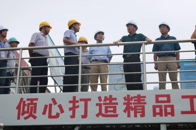8月1日下午,江苏省交通运输厅副厅长丁军华一行在集团公司副总裁巫亚明等人的陪同下,冒雨来到秦淮河航道整治工程洪蓝船闸项目部进行慰问并走访调研项目建设情况。
