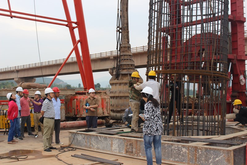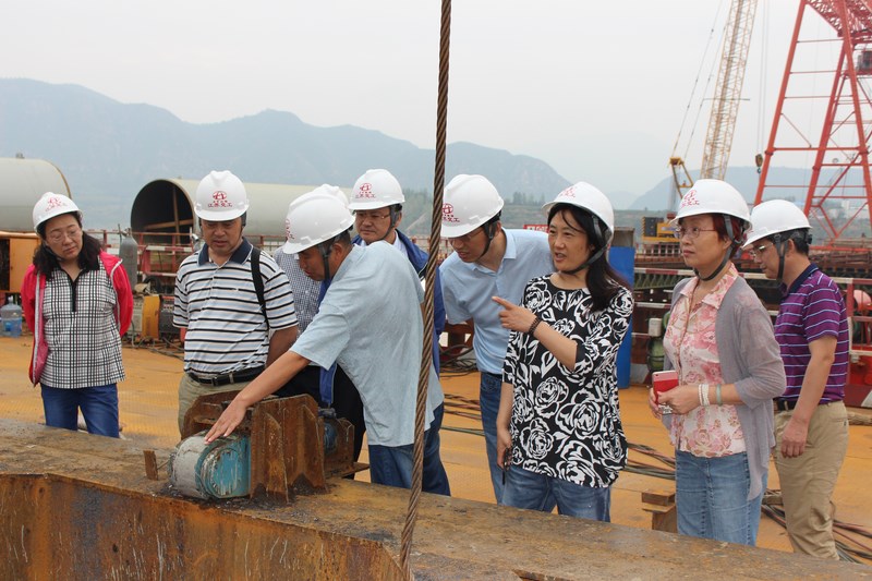 黄河特大桥项目负责人向徐胜华一行介绍了垣渑高速公路项目工程概况及最近开展的“看我的·望绿行动”暨“奋战垣渑、建功中原”系列竞赛活动的内容和宗旨。在黄河特大桥施工现场,协会会员与项目负责人就钢栈桥水上平台施工工艺、水上主墩永久性钢护筒的定位沉设工艺以及在小浪底库区地层结构复杂情况下的钻桩工艺等施工技术问题进行了交流。