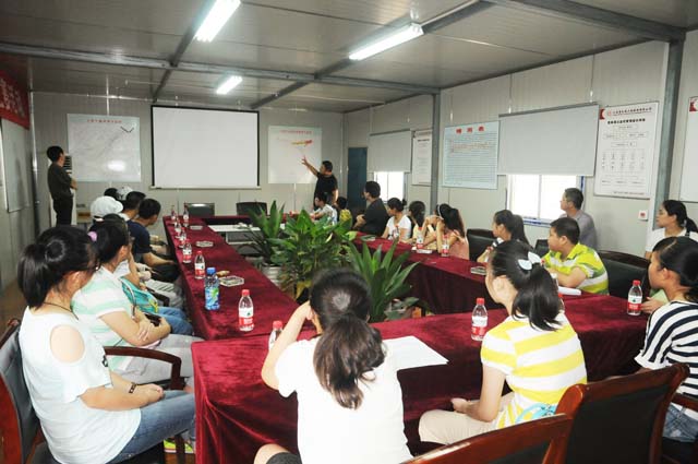 项目经理向同学们介绍工程进展情况