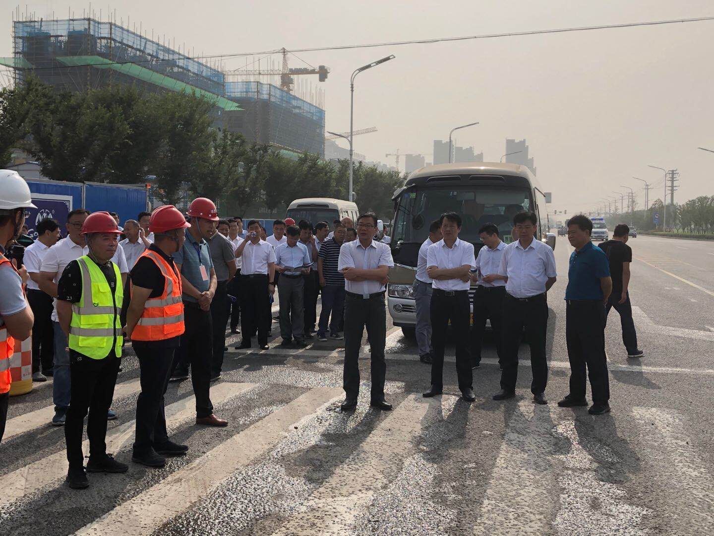 上午8点,观摩团到达界首市S255综合治理工程施工现场。项目负责人就施工质量管理、安全文明施工、优质工程创建及施工计划等向观摩团进行了详细汇报。徐会东书记对界首市S255综合治理工程目前的质量安全生产工作开展情况表示肯定,他希望项目部在今后的工作中继续抓好工程质量与安全管理,严格落实安全生产责任制,遵守安全生产规章制度,把好质量关、安全关,确保安全生产“零事故”。