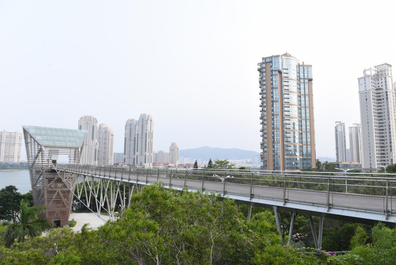 厦门山海健康步道全线已经通行,江苏交工承建的三处景观桥梁更像是一颗颗明珠,镶嵌在整条步道项链上,格外引人注目。健康步道充分考虑了与主要城市交通节点的衔接,市民和游客可通过沿线设置的52个出入口上下健康步道,出入口的平均间距约280米,出入口设置方式主要有坡道、普通梯道、椭圆形楼梯、椭圆形电梯、垂直电梯、直接平接等方式。开放以后,通过智能设备,市民、游客可体验到一系列人性化服务,如通过手机就能查询并导航到最近的出入口;在不同地点打卡可以看到“燃脂指数”;对着AR设备,还能跟着专业教练学太极拳。除此之外,沿线设置照明和监控系统、一键报警系统等,保障市民游客在步道上走得舒适,走得安全。一桥一景勾勒出如诗如画的厦门,江苏交工团队用自己的实际行动,征服了世界级难度,也为厦门市民交上了一份满意的答卷。