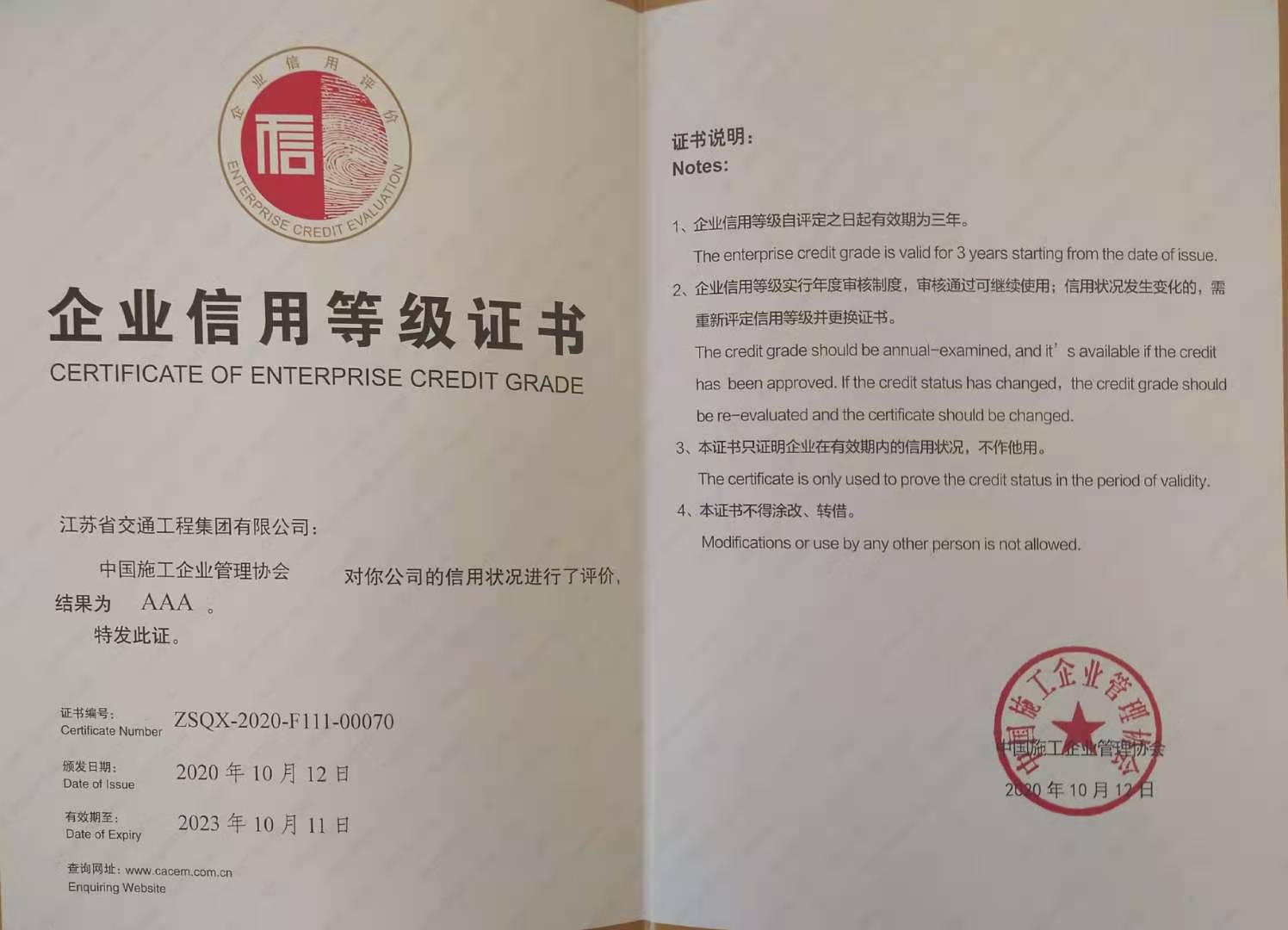 12月5日,由中国施工企业管理协会组织的“2020年度工程建设诚信企业推介大会”在广西南宁召开。集团公司再次以卓越的生产经营业绩、健全的管理体系以及良好的诚信口碑,顺利通过2020年度工程建设企业信用评价AAA级审核,荣获该协会授予的“AAA级企业信用等级证书”。同时,集团公司荣获2020年第一批工程建设企业信用星级的认定(16级),为企业诚信立业、稳健远行,实现高质量发展夯实了基础。