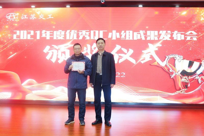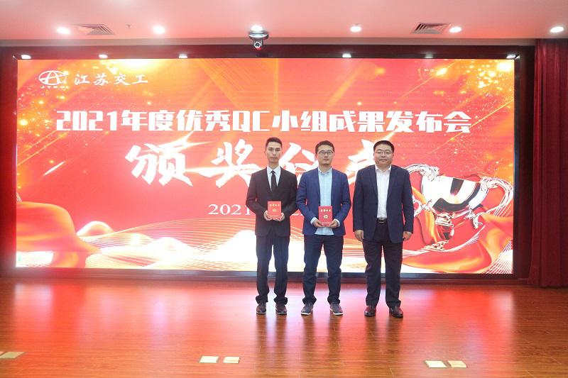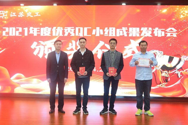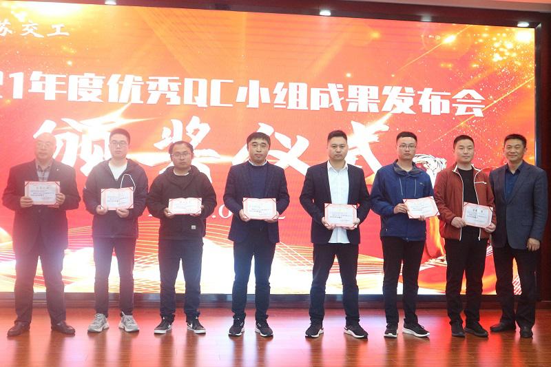 4月22日,江苏交工2021年度优秀QC小组成果发布会在集团总部举行,省交通企业协会会长朱安祥,质量管理部主任、国家级QC诊断师吴美蓉,集团公司领导巫亚明、艾旭、朱乾震出席发布会。
