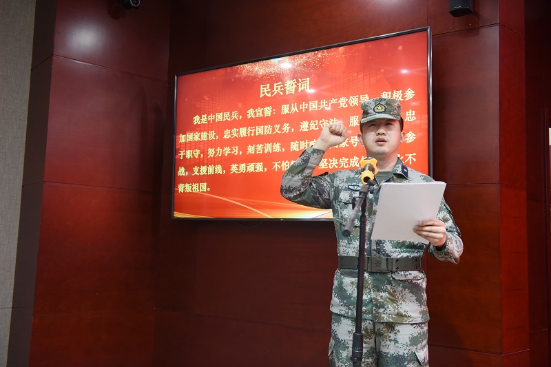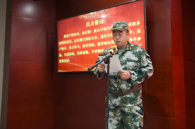 大会在雄壮的《中国人民解放军军歌》声中拉开了序幕,全体民兵着装整齐、精神饱满、斗志昂扬地接受点验。会上,集中为受点验分队举行授旗仪式,并宣读了民兵干部任职命令。全体参会民兵起立宣誓,民兵代表作表态发言,立志通过实际行动表明决心,牢记使命。随后,集团公司党委书记、董事长、总裁张晓宇与区委常委、人武部部长韩启涛共同签订装备预征预储协议,以提升民兵组织的人装结合率,为民兵分队遂行任务提供强力支撑。