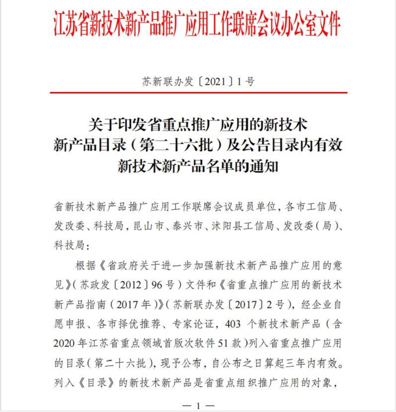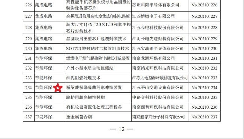 平山公司两项科技成果入选江苏省推广目录