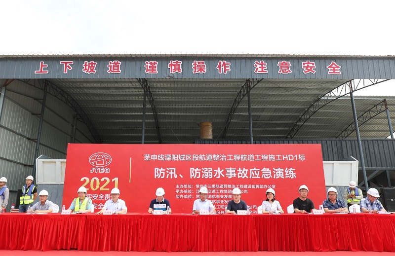 6月25日,芜申线溧阳城区段航道整治工程航道工程施工HD1标,在施工现场组织开展了“防汛、防溺水事故应急救援演练”。