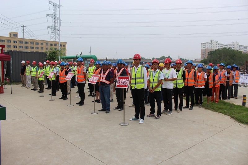 活动开始,海外分公司副总经理、项目经理薛翔对防洪防汛工作进行部署,要求大家牢固树立“防大汛、抗大灾、抢大险”的防护意识,确保各项防洪防汛设施设备完好,抢险应急预案有效可行。随着现场总指挥一声令下,防洪防汛演练正式开始。只见整个演练过程准备充分、组织有力,从应急队伍快速集结到紧急抢险救援,各个环节紧张有序,有条不紊,队员作风扎实,素质过硬。此次演练,将促进项目部提高应对汛情的应急反应能力,更好地保障项目部在汛期雨季安全施工,平稳渡汛。