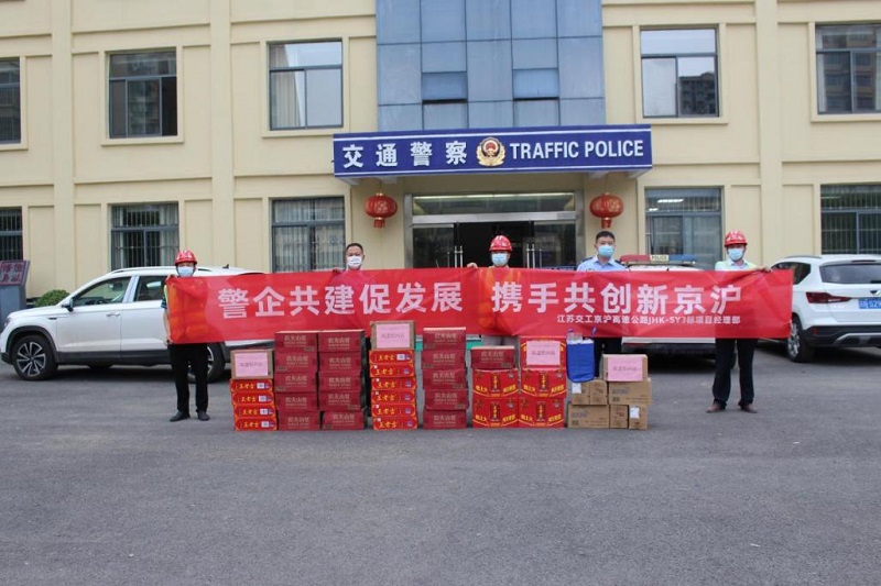 8月2日下午,京沪扩建沭阳3标项目部相关人员来到沭阳县交巡警大队,为该大队一线执勤民警、辅警送上了一批清凉消暑用品,感谢他们在防汛防疫行动中的奉献。疫情无情人有情。交巡警大队的一线民警、辅警,以饱满的热情和顽强的斗志默默坚守在防汛防疫的战线上,用实际行动谱写了一曲曲“人民警察为人民”的赞歌。