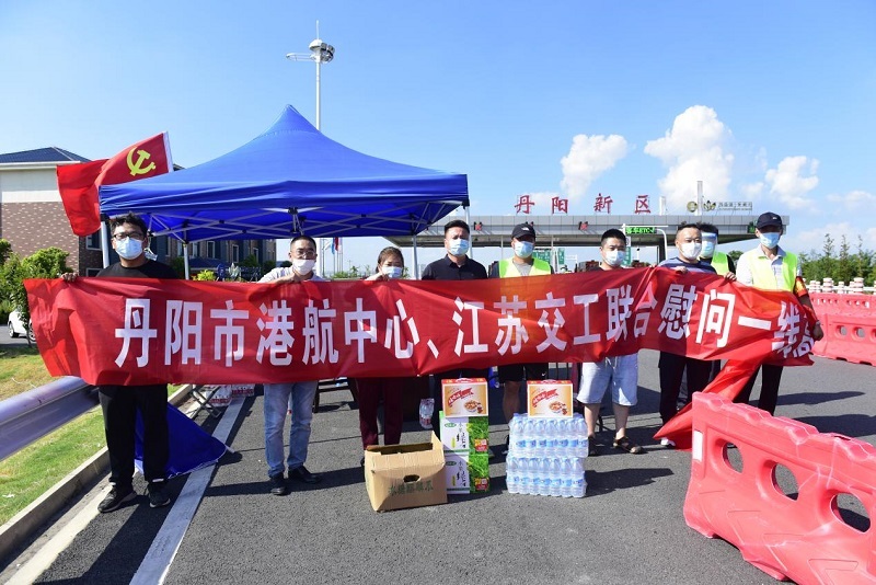 8月4日,丹阳市港航事业发展中心党委书记、主任董辉平,丹金溧漕河项目经理沈扬一行来到阜溧高速丹阳新区收费站,向坚守疫情防控第一道关卡的一线人员表示慰问。