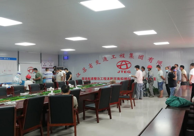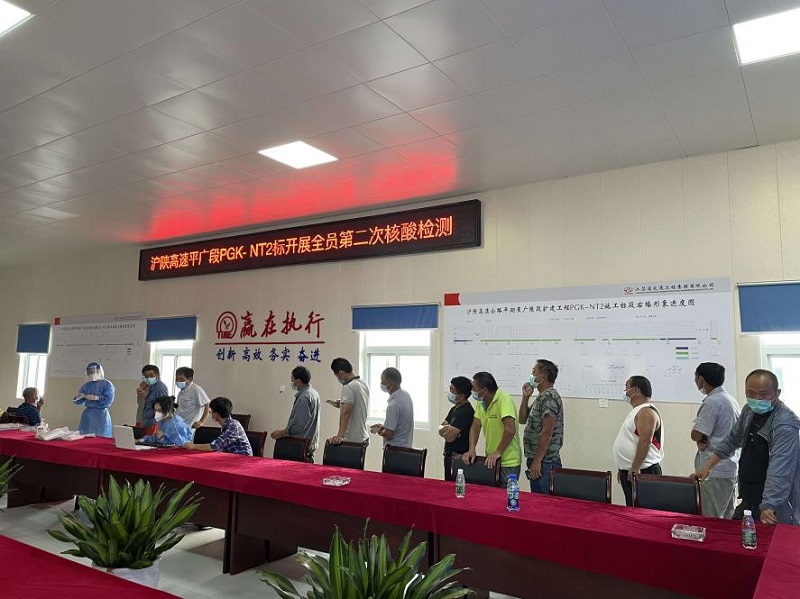8月5日,在沭新河南船闸工程项目部会议室,全体人员正排着队、按照要求进行核酸检测。随着结果陆续出来,大家喜笑颜开,急急忙忙赶赴施工现场。