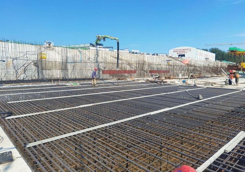 作为宿迁市重点工程项目,沭新河南船闸工程受到多方重点关注。近来,受疫情、高温等诸多因素影响,工程建设面临巨大挑战。为确保项目有序推进,项目部全体人员持续发力,在积极做好疫情防控的基础上,开启“白+黑”模式。在工程施工现场,建设者们顶着烈日、迎着热浪,专注操作各类机械、绑扎焊接钢筋,运输车辆往来穿梭,施工机械轰鸣不断。大家战高温、抢进度,多个工作面同时作业,实现了工程建设高质量推进。