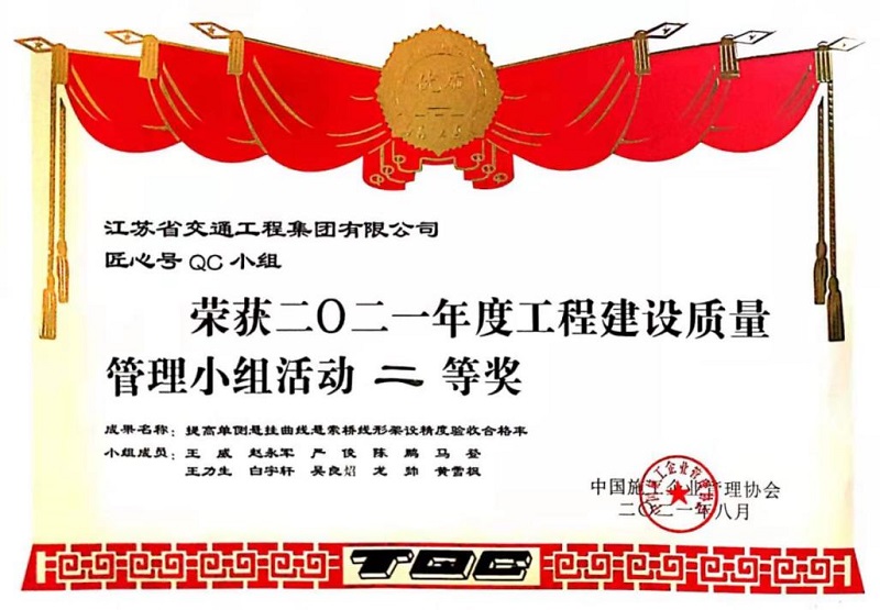 江苏交工匠心号QC小组获2021年度全国工程建设质量管理小组活动二等奖