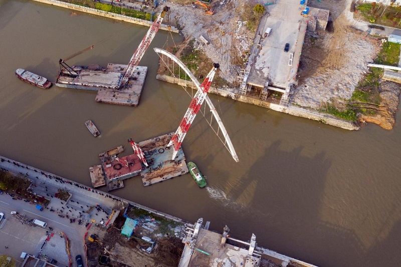 云阳大桥位于镇江丹阳市中心城区最重要的主干路云阳路上,跨越京杭运河。老桥建成于1992年,现已不能满足苏南运河丹阳市区段三级航道整治要求,须拆除后原址重建。据了解,老桥、新桥均由江苏交工承建。