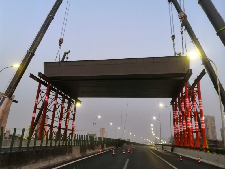 该项目临近杭州绕城高速萧山东入口,且上跨104国道、彩虹高架、地铁5号线、萧绍运河、萧明线、陈端路、门前河等道路与河流,现场施工环境复杂,受限较多。自开工以来,项目部精心组织、倒排计划,优化施工方案,加强内部管理,积极运用新技术新工艺,先后克服工期紧张、跨线施工难度大、新冠疫情不良影响等诸多困难,最终顺利完成高架桥梁建设施工任务,如期达成通车目标。