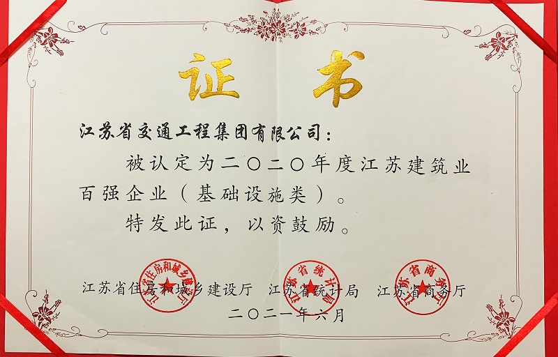 据悉,“百强企业”认定工作是江苏省住房和城乡建设厅、江苏省统计局、江苏省商务厅为激发建筑业企业改革创新、转型发展的积极性、主动性和创造性,擦亮“江苏建造”品牌而联合组织开展的,分为综合实力类、建筑装饰类、建筑钢结构类、建筑外经类、建筑安装类、基础设施类六项。该奖项综合考量了多方面指标数据,全面反映了企业的发展情况。
