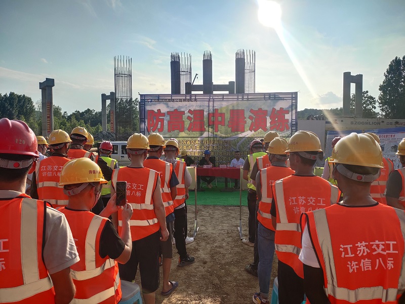 6月21日,许信8标项目部在互通区施工现场组织开展了夏季防高温中暑应急演练,监理单位、卫生院以及施工班组人员共计40余人参加。 演习前,医护人员针对夏季防暑常识进行了培训,讲述了高温中暑救护要领、应急处置流程及防暑相关安全常识。下午五点半,演练正式拉开序幕:只见有职工“出现”中暑现象、晕倒在工作现场后,安全负责人立即汇报上级启动应急预案并拨打急救电话,救援组迅速抵达现场,将晕倒的职工安排至妥当位置,救护人员根据其症状,初步判断为高温中暑,迅速对其进行人工心肺复苏,经过抢救,中暑人员慢慢清醒过来。在演练中,各小组流畅迅速,各环节衔接紧密,严格按照应急预案和职责分工展开行动,达到了磨合机制、锤炼队伍、提升应急处突能力的预定目标。