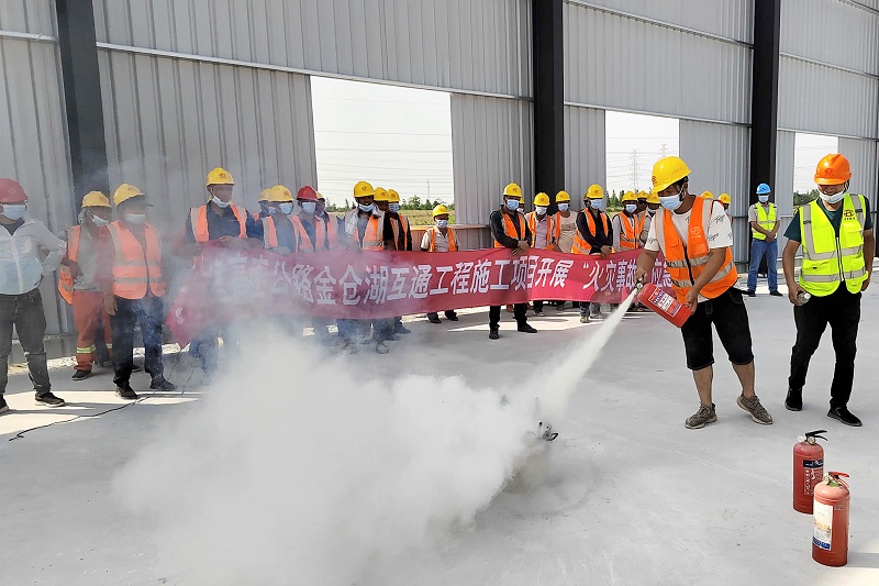 盛夏时节,火灾频发。6月末,为进一步提升职工的消防安全意识和操作技能,沪宜高速金仓湖互通项目部针对全体职工,组织开展了消防事故应急演练。演练过程中,安全科负责人讲解了遇到不同火灾应对方式,细致说明了灭火器的使用方法,同时介绍了有关干粉灭火器的使用知识和使用过程中的注意事项,强调使用灭火器灭火时,一定要谨记“一提、二拉、三握、四压”使用口诀,并对使用程序现场进行了示范。在专业人员的指导下,参训人员依次有序进行灭火体验,感受灭火器的压力、灭火器的使用要点,亲手操作灭火器进行灭火演练,对灭火常识有了更深刻的认识和了解。