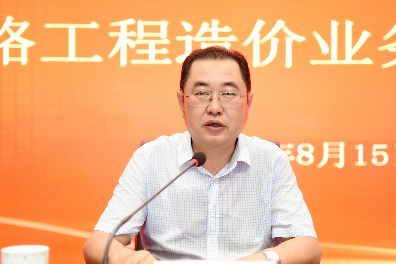 8月15日,集团公路工程造价培训动员大会在总部二楼多功能厅举行,集团公司总裁王纪源作动员讲话,党委副书记艾旭主持动员会。
