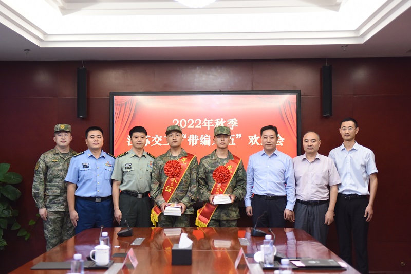 传承峥嵘报国志,欢送新兵踏新程。9月13日下午,2022年秋季江苏交工“带编入伍”欢送会在集团总部召开,2名交工青年身穿一身戎装、胸前挂着绶带和大红花,怀揣着保家卫国的梦想,承载着集团公司的嘱托与期望,即将踏上新旅程,为国防和军队建设贡献青春力量。