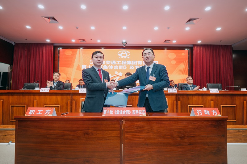 会前,全体职工代表利用网络平台,通过无记名投票小程序,完成了《第十轮<集体合同>及附件》《不定时工作制和综合计算工时工作制》、评议“职工之家”和工会主席等投票表决事项。会议期间,与会代表认真听取并审议了行政工作报告、工会工作报告、财务工作报告等内容;集团业务中心、子公司、区域分公司、直属项目部等相关负责人现场递交了涉及党建、经营和安全生产等内容的目标责任状;表彰了2022年度行政和工会条口涌现出的部分先进集体和个人代表;通报了文件表决、职工之家测评结果。王纪源总裁与艾旭主席分别以行政方、职工方代表身份签订了第十轮《集体合同》及附件。