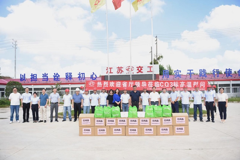 8月3日,省交通运输工会主任杨金国、副主任金建浩一行专程来到集团公司镇江312国道宁镇段改扩建工程3标,慰问工程一线职工,调研考察集团公司“安康杯”竞赛“安全技能培训”、“安全民主监督”示范基地创建工作等情况。镇江市交通运输局党委委员、四级调研员张玉平,集团公司副总裁、总工程师巫亚明等陪同调研。