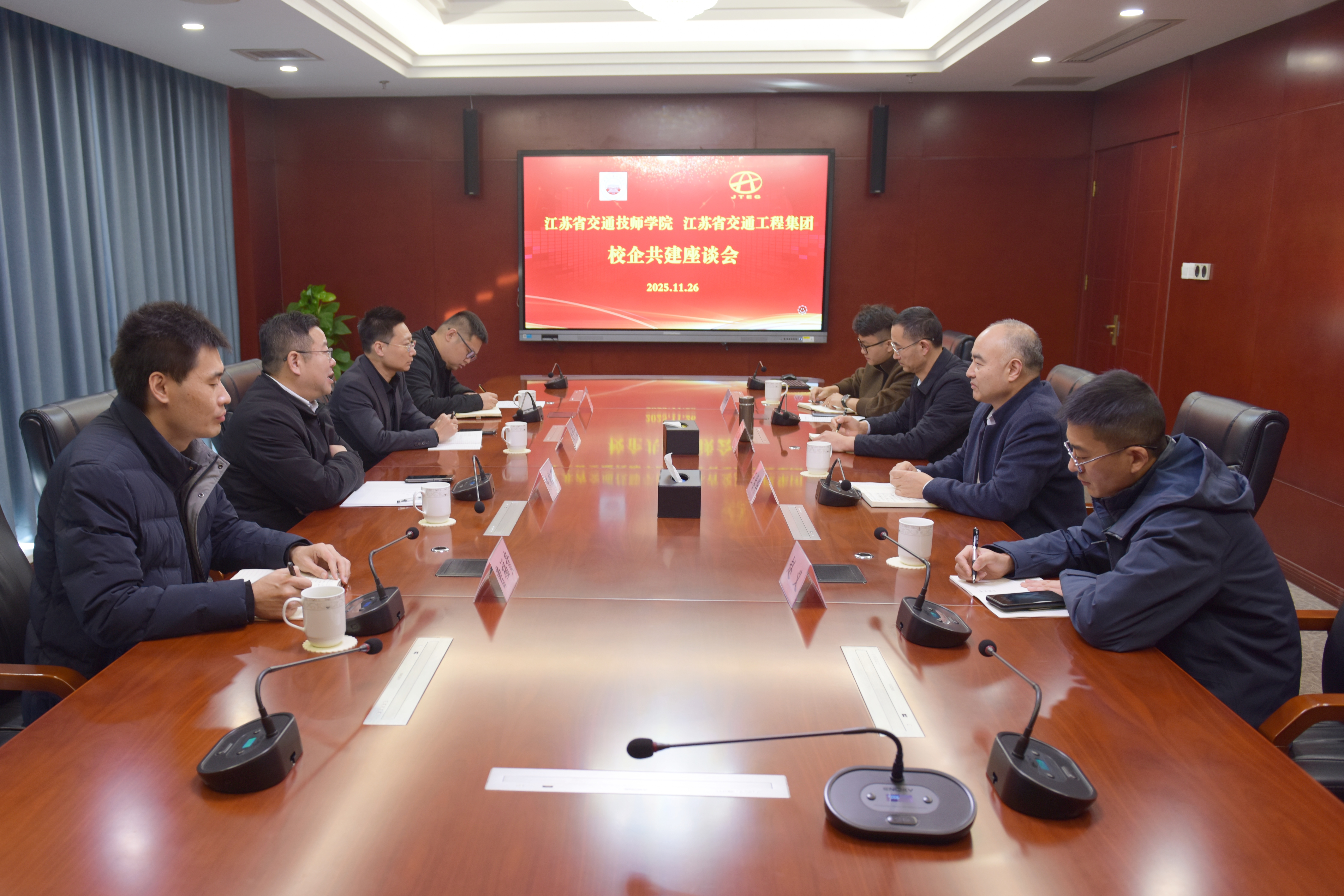 11月26日,江苏省交通技师学院(以下简称“学院”)陈燕飞副院长一行到访集团公司总部,与集团党委书记王春华等举行校企共建座谈。双方围绕党建引领、技术技能人才培养、施工专业水平提升等方面进行了深入交流,并就进一步加强校企合作协同、学习资源共享、“双师双能”计划等初步达成共识。