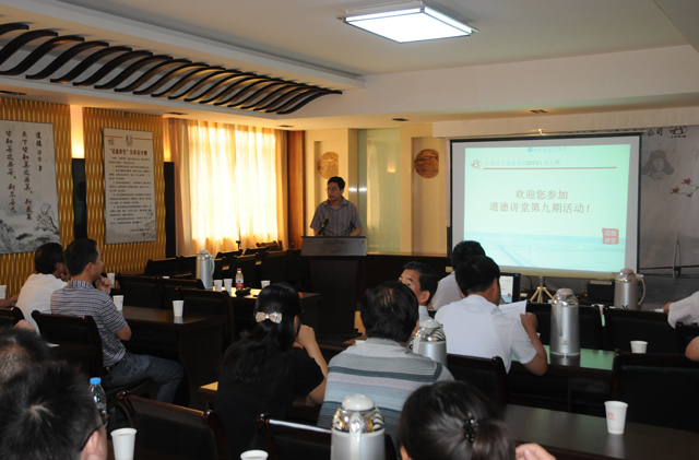 9月2日上午,集团公司第九期“道德讲堂”在谷阳基地开讲,集团公司部分驻镇单位的职工参加本次活动。党办主任陈宝芳主持。