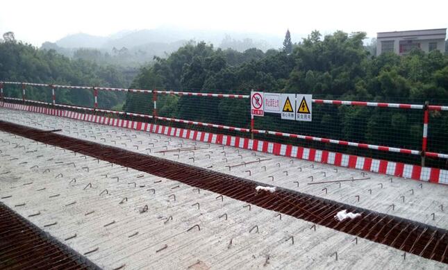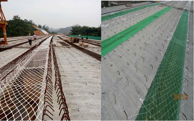 用安全网进行分隔带、湿接缝遮挡防护。石棉网防止重物坠落,密布网防止小的物件坠落