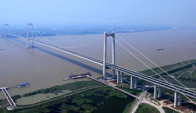 江苏泰州长江公路大桥预计将于11月下旬正式通车,目前通车前各项准备工作正在进行中。泰州长江公路大桥及其接线连接江苏省泰州市、常州市和扬中市,全长约62公里,其中泰州长江公路大桥长约7公里。集团公司承建了南塔、南接线等项目。