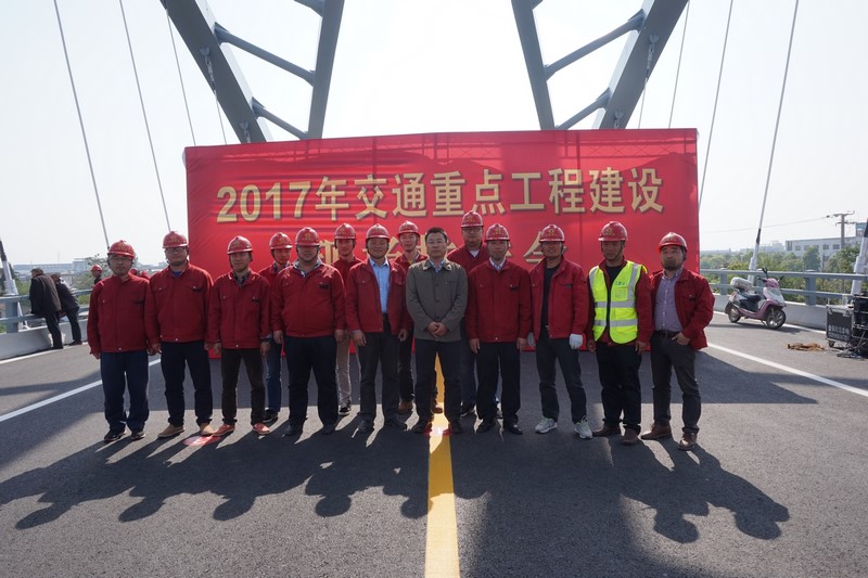 江海西大桥东西向横跨连申线航道(海安如海运河段),是进入海安市区的交通大动脉,桥梁全长522米,宽16.5米,主桥是钢结构蝴蝶拱景观桥。自2016年5月1日开工建设以来,连申线(海安段)桥梁二期工程项目部以先进的管理理念、科学的现场布局、规范的项目管理、一流的工程质量,顺利实现了江海西大桥项目建设的各个节点目标,为海安县人民打造出一流精品工程。它的顺利通车,不仅改善了主城区与高新区西部和海安西部区镇的交通条件,而且提升了海安县城形象和品位,助推经济社会事业发展。