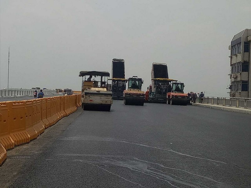 本次桥面沥青摊铺是黄码大桥建设项目一个关键节点,摊铺工作的圆满完成,为黄码大桥六月底全幅通车的建设目标奠定了坚实基础。(李汉青)
