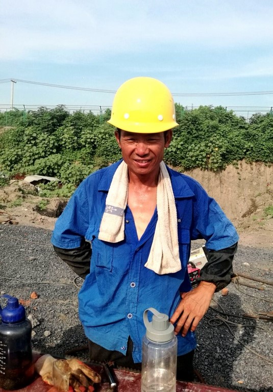 (图为:2017年7月20日中午,淮安市快速路工程5标,39号墩立柱浇筑施工现场,现场气温直逼40度。)