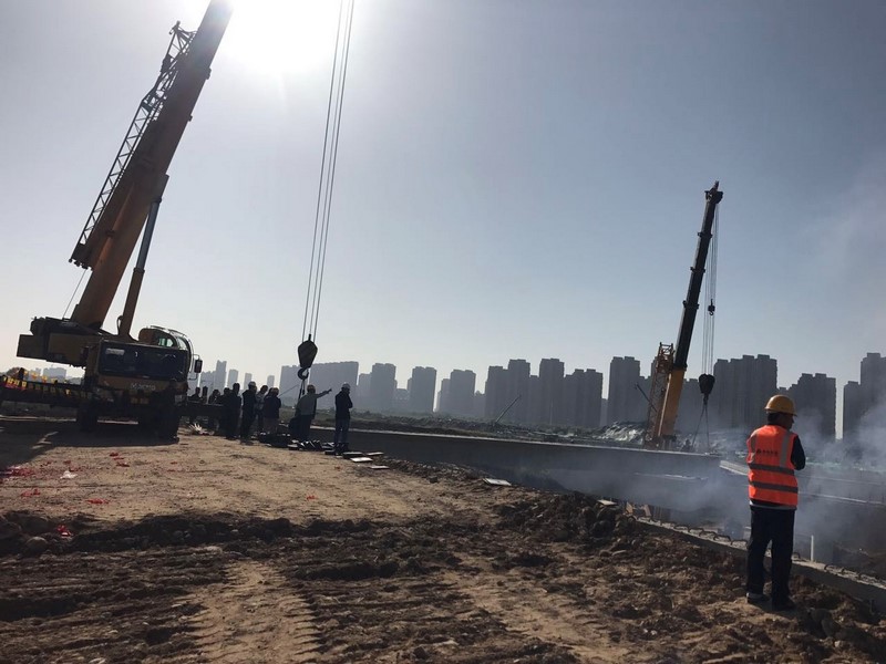 中阿之轴文化景观工程五号路北桥预制板梁顺利安装