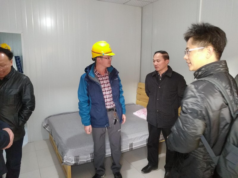 随后李局长一行来到施工2标段项目部宿舍区,在察看了员工宿舍后,提醒项目部广大员工,当前天气较寒冷,务必要加强宿舍区域的防火措施和用电安全检查工作,要在宿舍外墙区域张贴醒目的消防安全宣传标语和警示画,对于消防安全切忌不能放松警惕。(陈鹏)